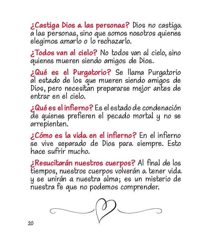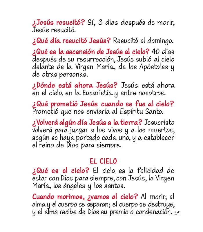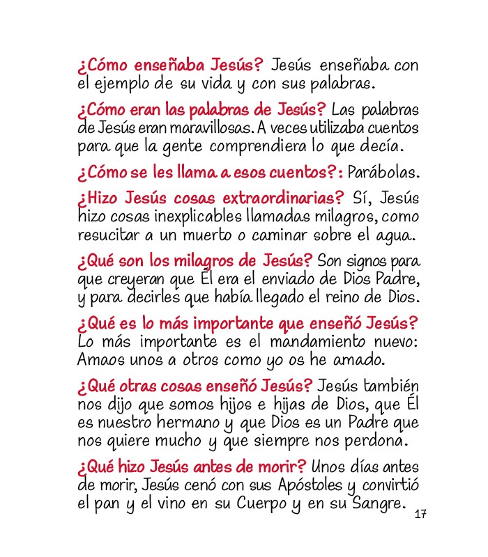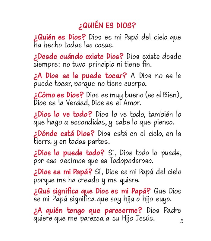 Los catequistas disponen de un texto con formato de preguntas y respuestas, no tanto para ser memorizado como explicado. Proporcionará a los pequeños una visión enriquecida de los misterios de la fe, según su capacidad conceptual, que quizá les ayude durante toda su vida.