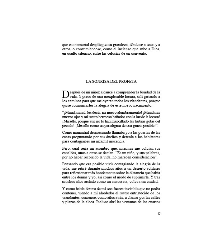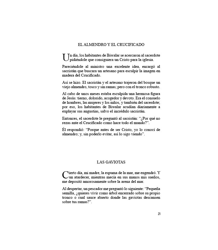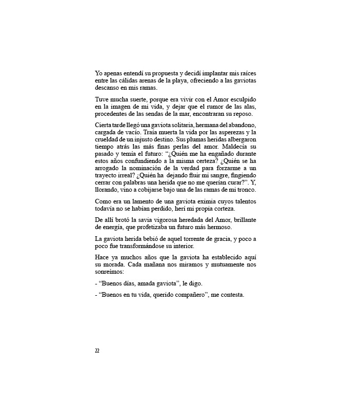 El libro, escrito en prosa poética, con figuras literarias y metáforas, es una bella guía sobre el comportamiento humano, libre e inundado de amor.