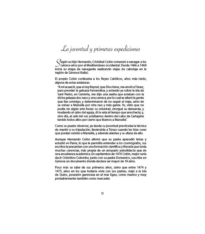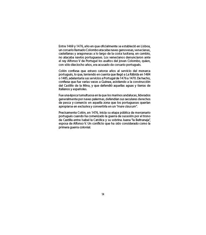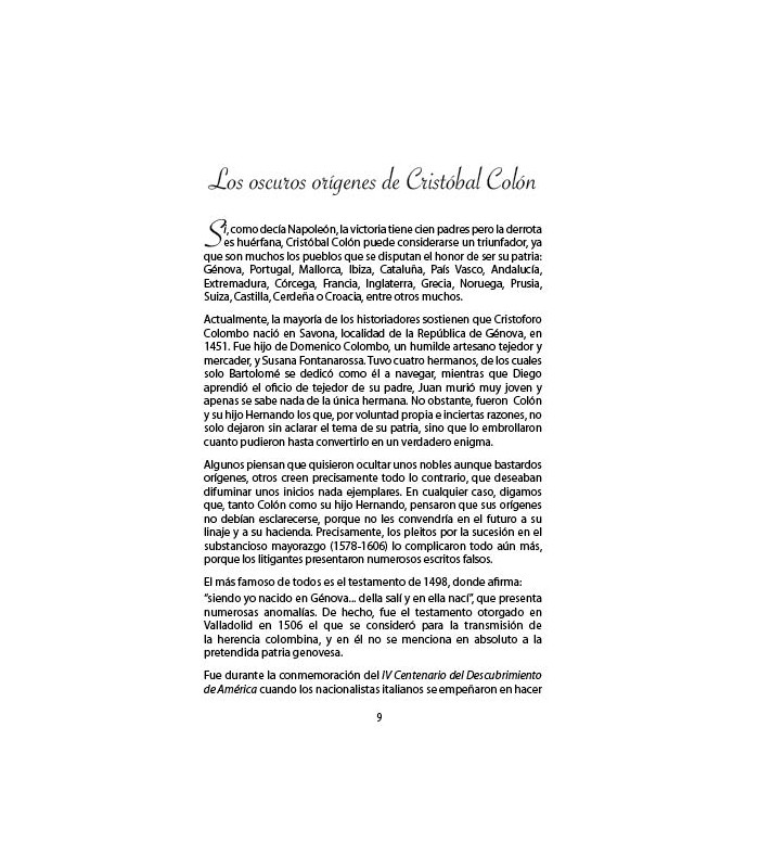 El autor ha escrito una obra brillante, de apasionante lectura, sólidamente documentada y con importantes aportaciones históricas sobre la figura de Cristóbal Colón. Tiene 144 páginas.