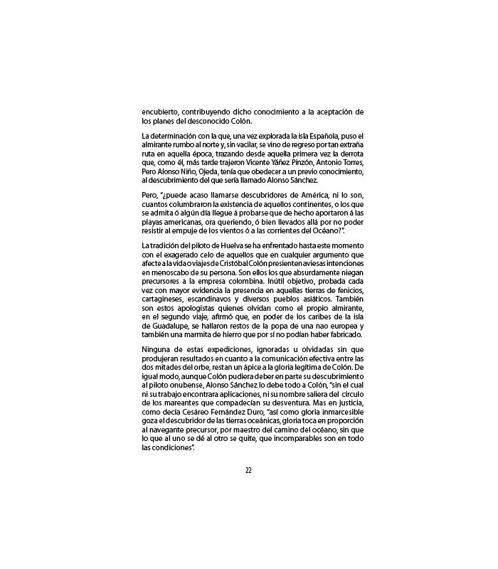 Unos excelentes navegantes, como los Pinzón o los Niño, naturalmente hijos de su tierra y de su época. Por tanto, el conocimiento de las leyes, las costumbres, las tradiciones, la cultura de esta comarca del Tinto-Odiel, a cuyo estudio el autor ha dedicado prácticamente toda su vida, explican muchos acontecimientos de este trascendental episodio histórico: el descubrimiento de América.