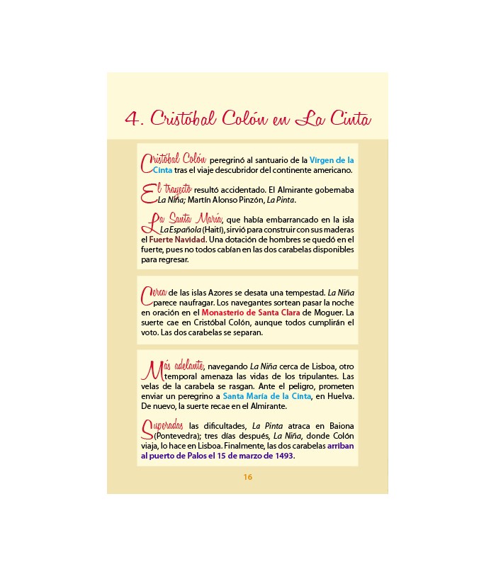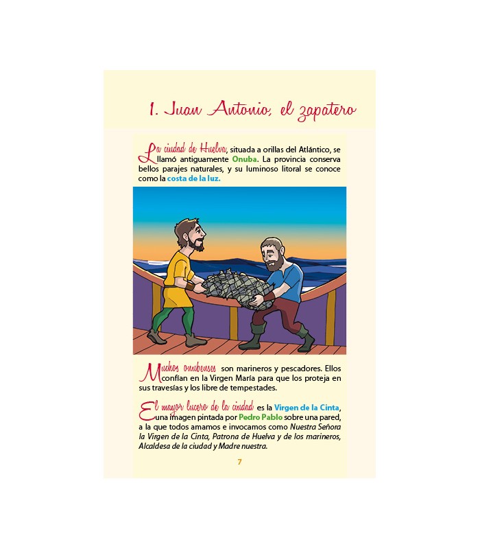Con lenguaje sencillo, ilustraciones preciosas y formato pedagógico, ofrece la historia de Patrona de Huelva y singular Abogada de los marineros. Es un libro para todas las edades, especialmente dirigido a los jóvenes.