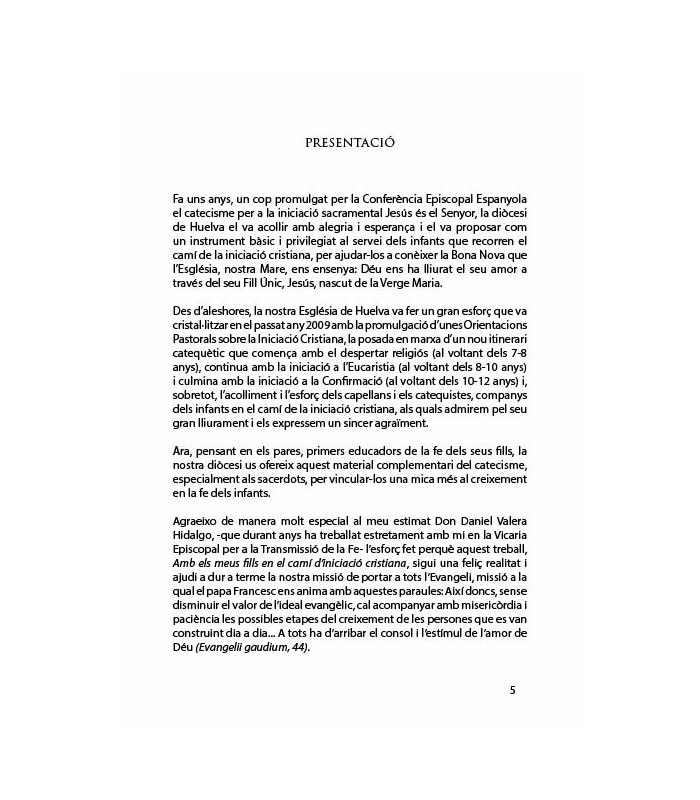 Don José Vilaplana Blasco, bisbe de Huelva, presenta el llibre amb l'esperança que contribueixi a dur a terme la nostra missió d'apropar a tothom l'Evangeli. L'obra, de 144 pàgines, segueix els nuclis temàtics del catecisme Jesús és el Senyor.