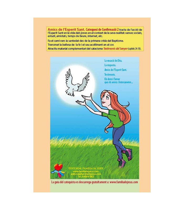 Amics de l’Esperit Sant. Catequesi de Confirmació 2 tracta de l’acció de l’Esperit Sant en la vida dels joves en el context de la seva realitat: xarxes socials, estudi, amistats, temps de lleure, internet, etc. Edats: 12-14 anys.