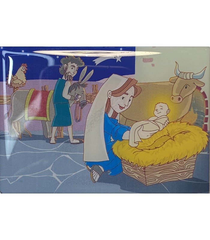 Amb un dibuix de la Sagrada Família al portal de Betlem, la mula i el bou.