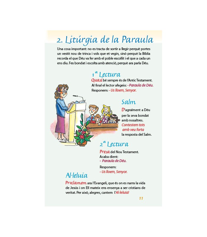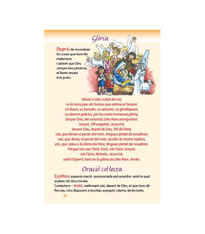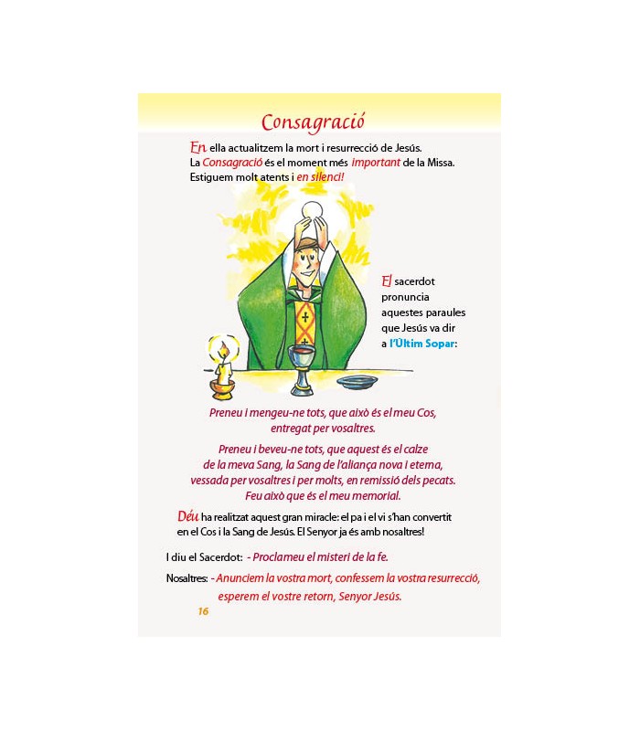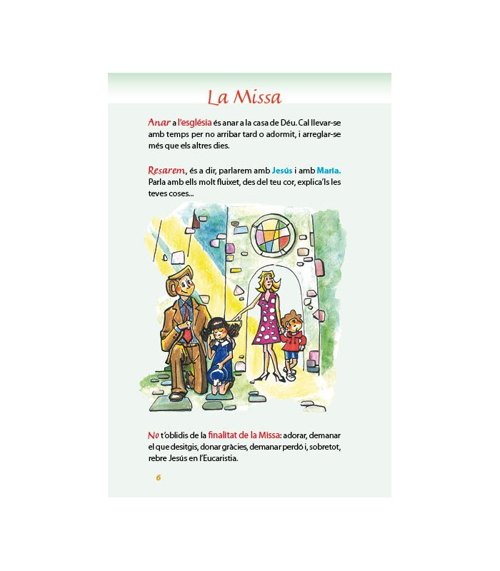 Excepcional visualització i text dinàmic; conté les oracions i les respostes de la Missa. Inclou els dos credos. Il.lustracions y textos són adequats per aquestes edats.