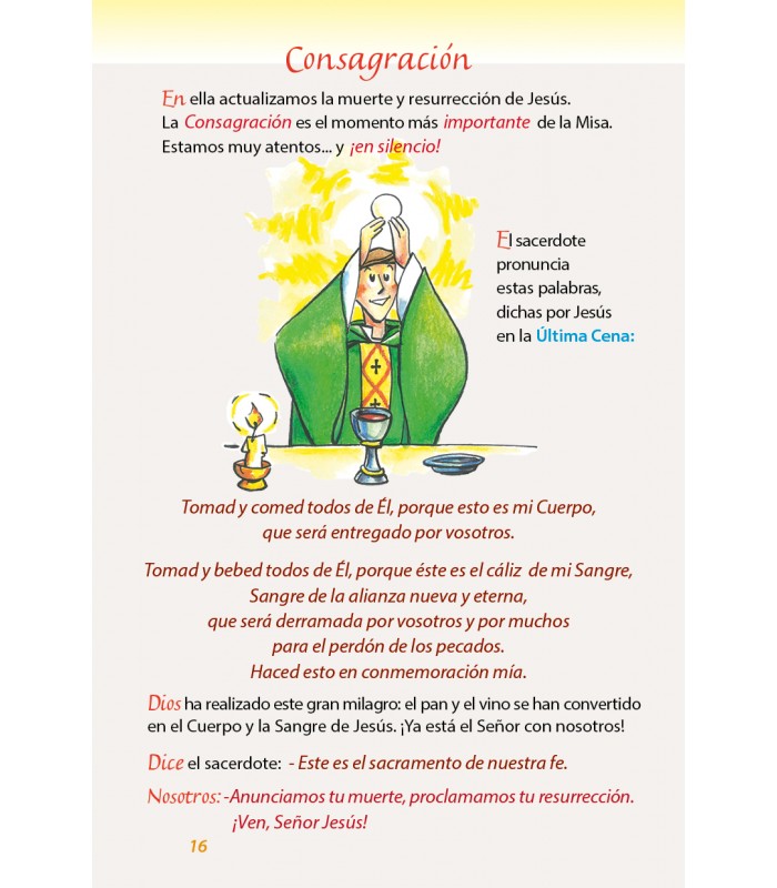 También consideramos oportuno incluir cuatro páginas con los conceptos teológicos y litúrgicos que acompañan a la Eucaristía, adaptados a sus edades.