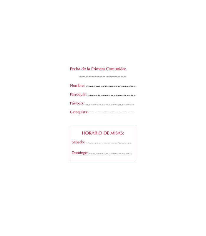 La Editorial Familia de Jesús ha confeccionado esta obra para que los niños y las niñas recuerden el día que recibieron a Jesús por vez primera, y puedan tratarlo a través de las oraciones y de su oración personal.