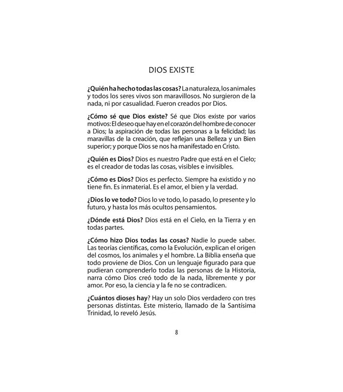 El libro explica el contenido de la fe a los niños, mediante preguntas y respuestas. Es un método muy práctico para memorizar los conceptos.