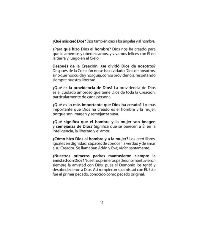 El lenguaje del libro facilita la comprensión de los conceptos. Dios, la creación, los ángeles, el hombre, el bien y el mal, Jesucristo, la Virgen María, la Iglesia, los sacramentos y los Mandamientos, así como oraciones y otros temas trazan un recorrido de la fe cristiana, enseñando a los niños y niñas la amistad y el amor hacia Jesús y María, la Iglesia, su parroquia..., nuestra fe.