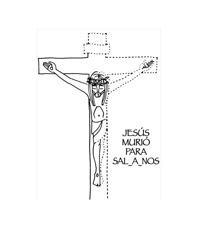Unir los puntos para terminar la imagen de Jesús en la cruz y colorear