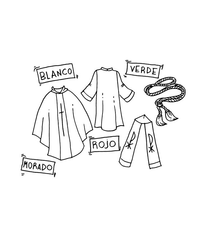 Ornamentos para celebrar la Eucaristía. Dibujo para colorear. Distintos colores en función de la Misa y del tiempo litúrgico