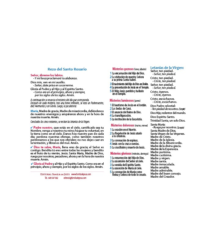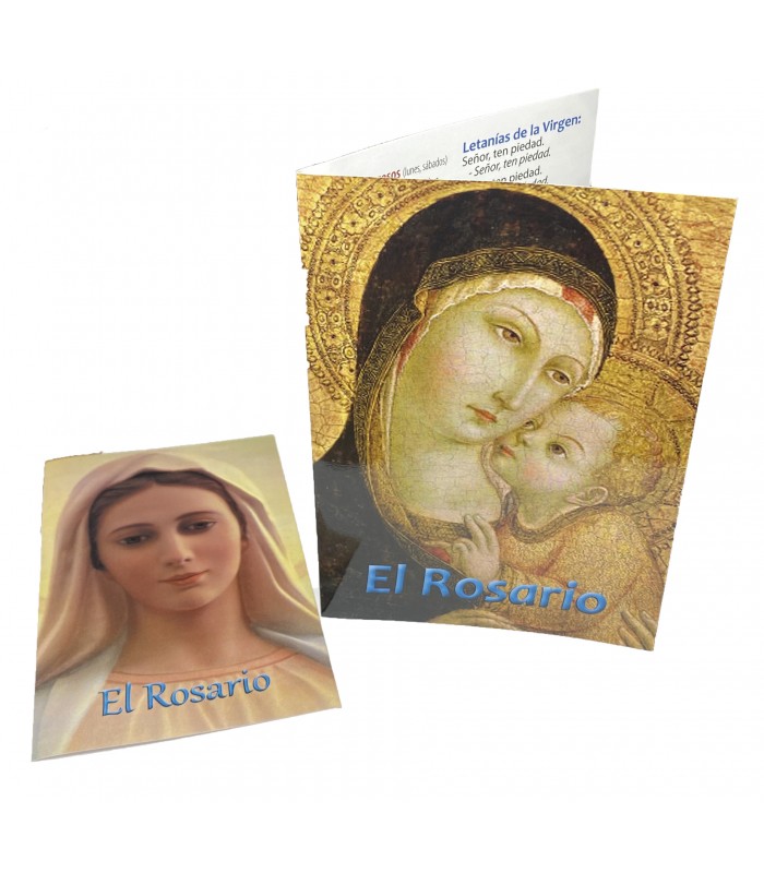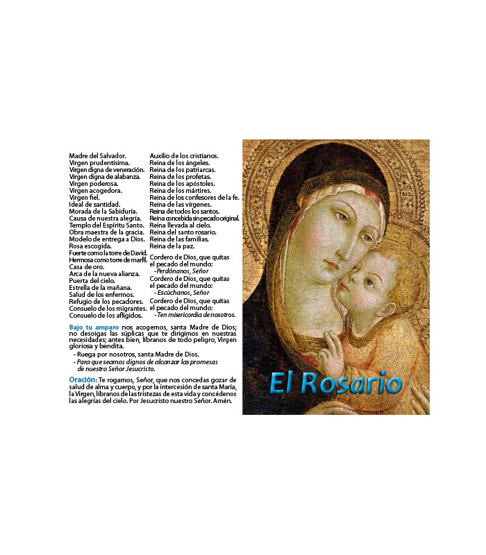 El Rosario, díptico en formato papel plastificado. Incluye las oraciones completas.