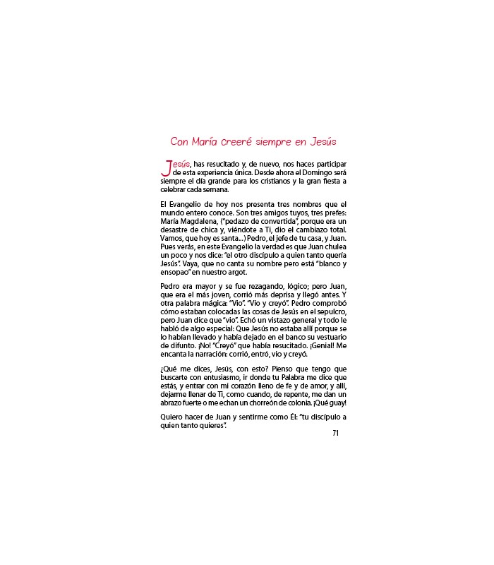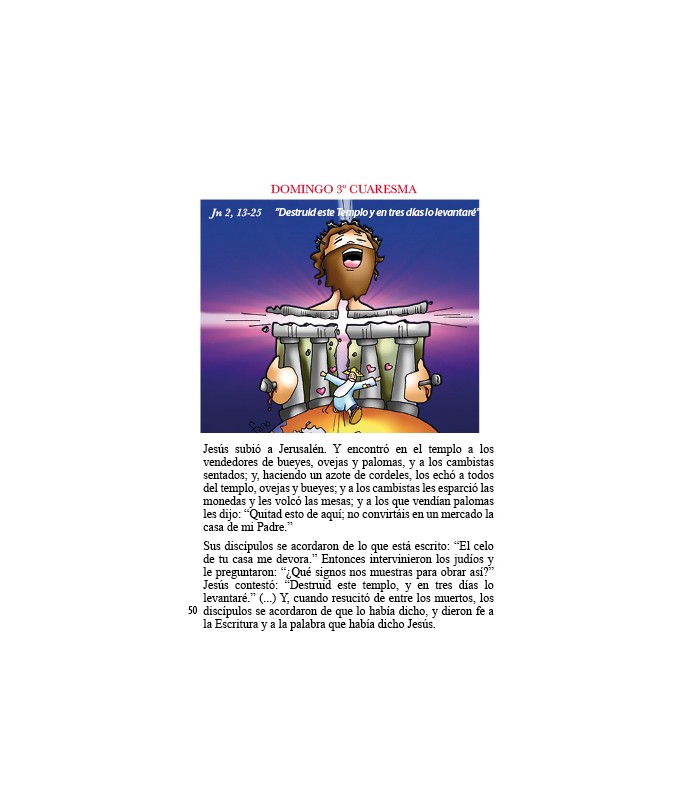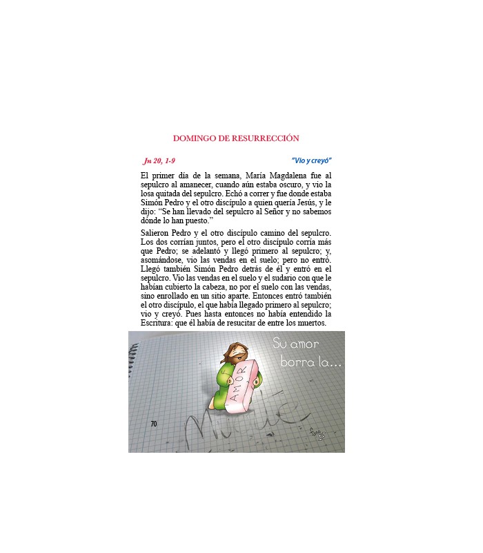 Junto al Evangelio del día, la página opuesta ofrece sugerencias para hacer vida propia el Evangelio.