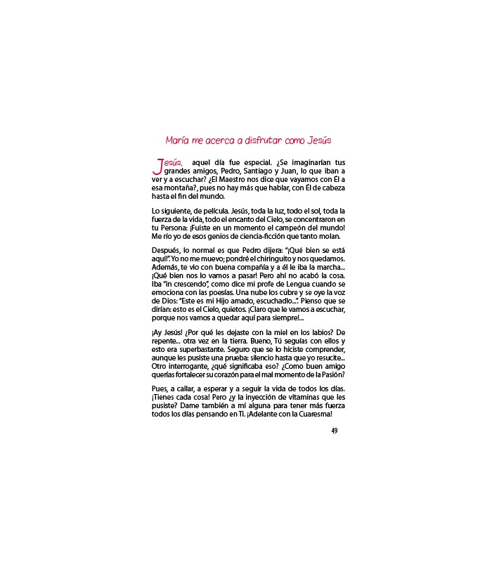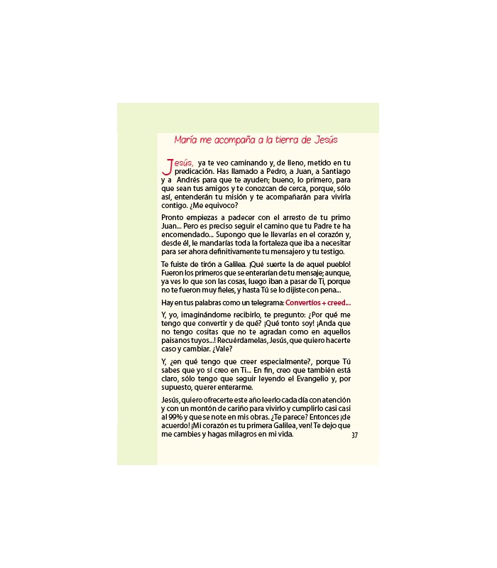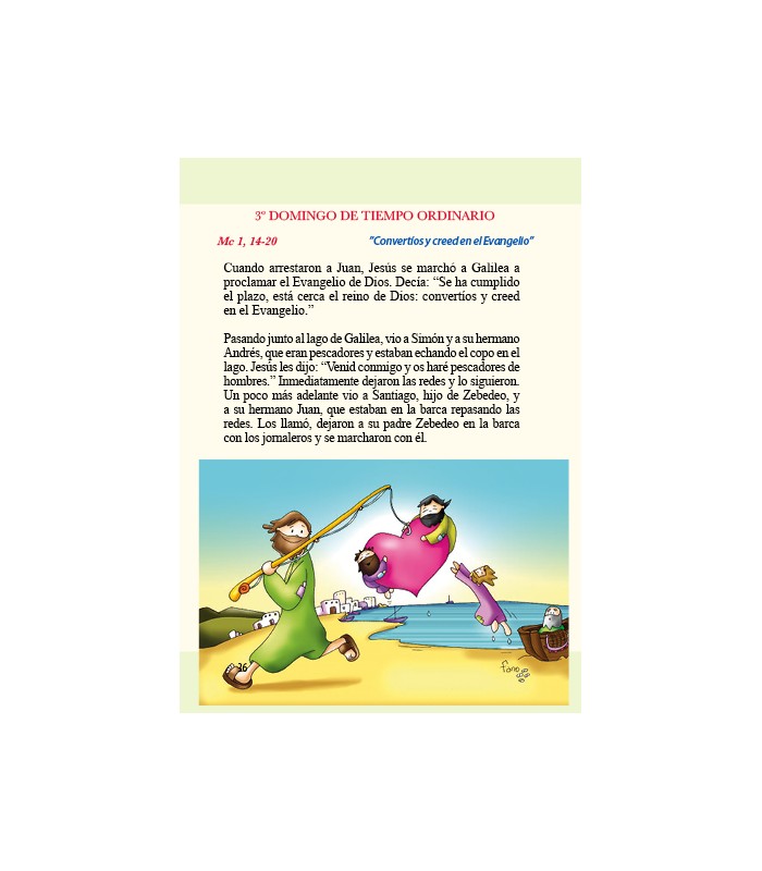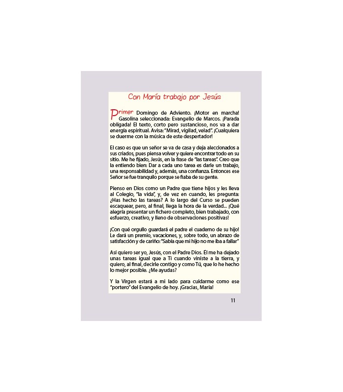 Junto al Evangelio del día, la página opuesta ofrece sugerencias para hacer vida propia el Evangelio.