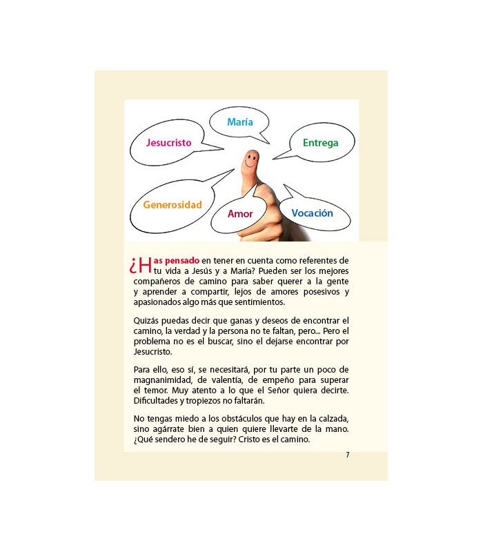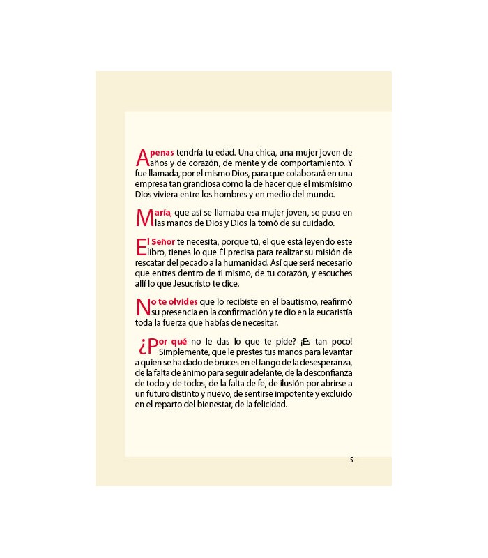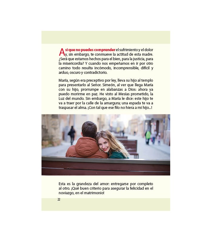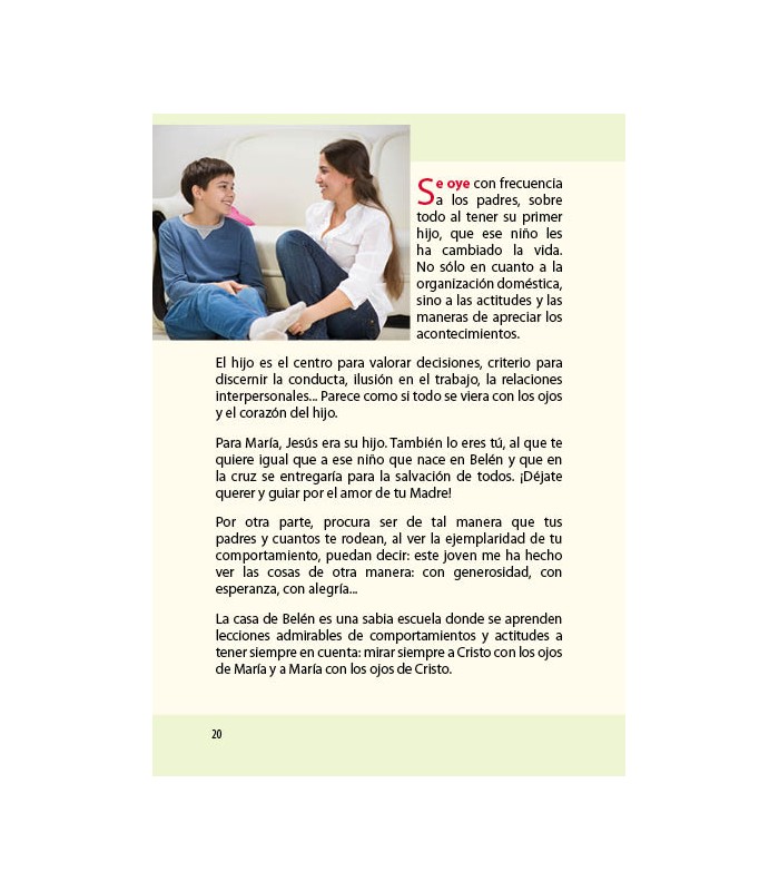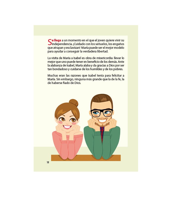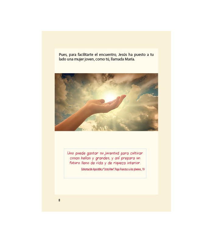 El cardenal Carlos Amigo ofrece a los jóvenes este opúsculo en que los invita a contemplar las escenas evangélicas en que aparece María o se la menciona: Anunciación, Visitación, Nacimiento de Jesús, Presentación, Hallazgo en el Templo, Alabanza de la mujer a la Madre, Al pie de la Cruz, Con su Hijo muerto en los brazos.