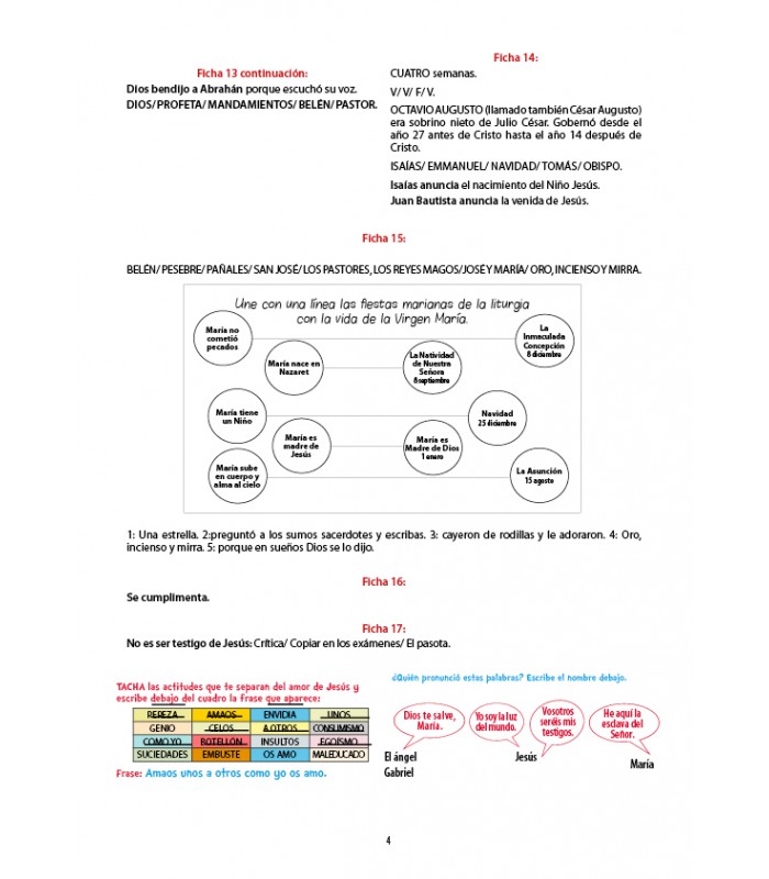Soluciones a las fichas de actividades para la catequesis de confirmación, primer año.