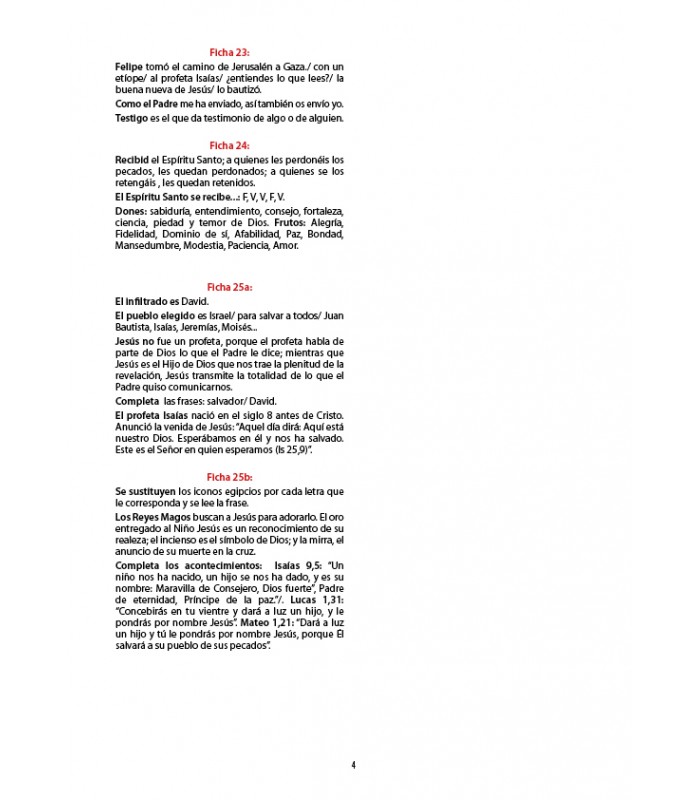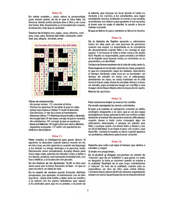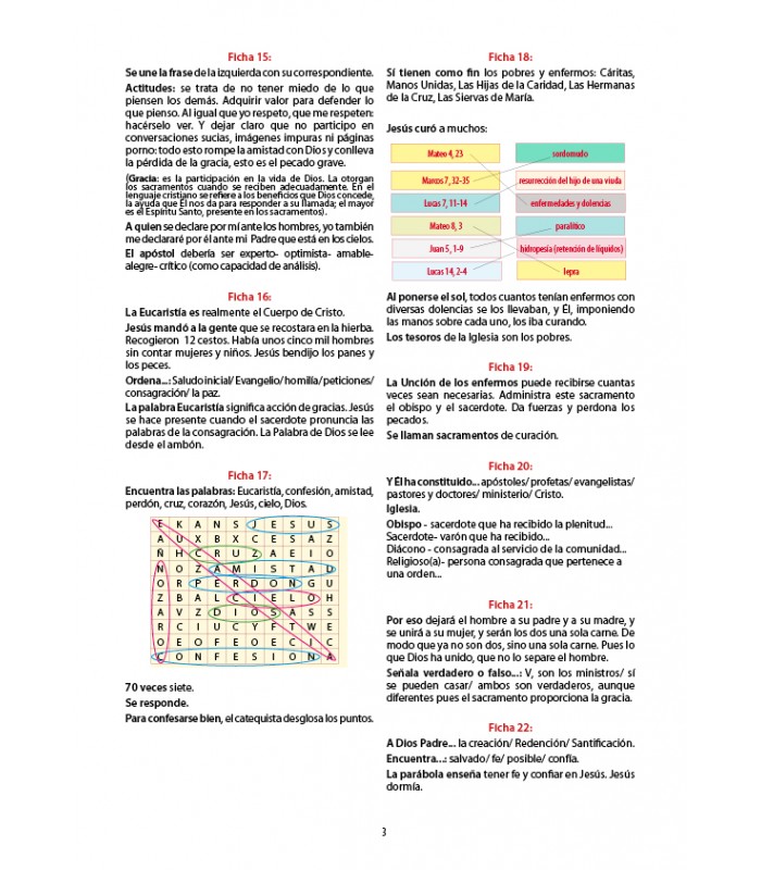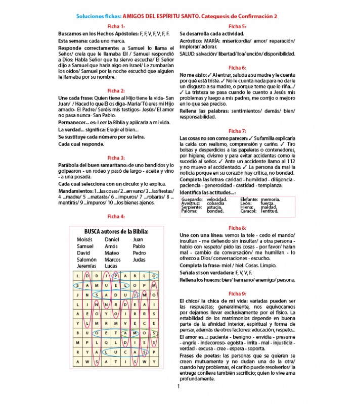 Soluciones a las fichas de actividades para la catequesis de confirmación, segundo año.
