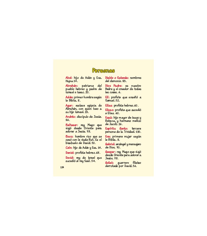 Un elenco de personajes aparecen al final del libro con una sencilla descripción.