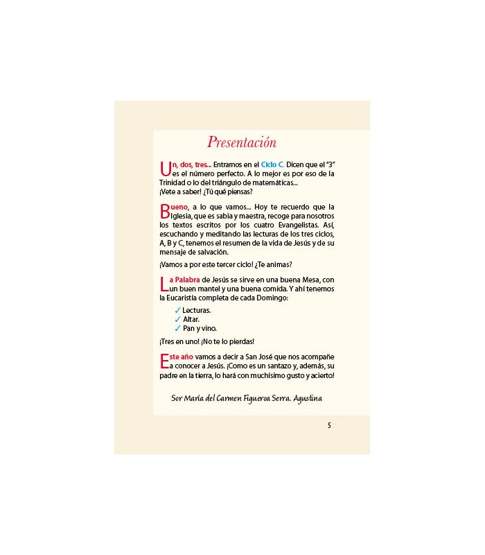 Incluye los domingos y las fiestas del año litúrgico. Cada domingo sugiere cómo hacer vida propia la palabra del Señor.