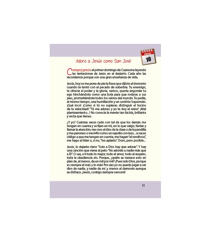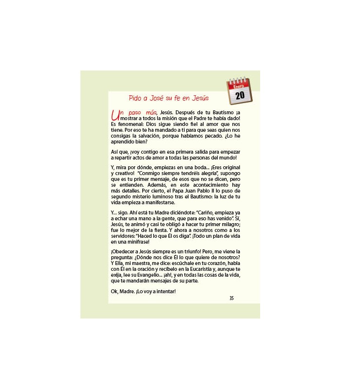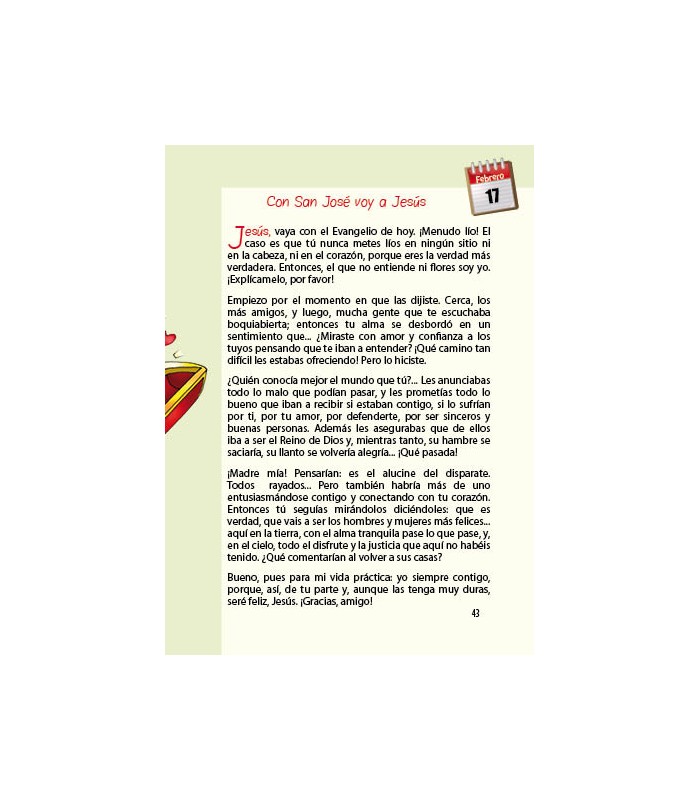Junto al Evangelio del día, la página opuesta ofrece sugerencias para hacer vida propia el Evangelio.