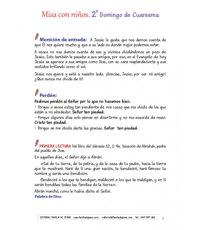 Misa con niños. Segundo Domingo de Cuaresma. Ciclo A