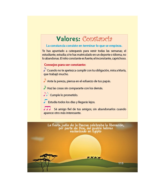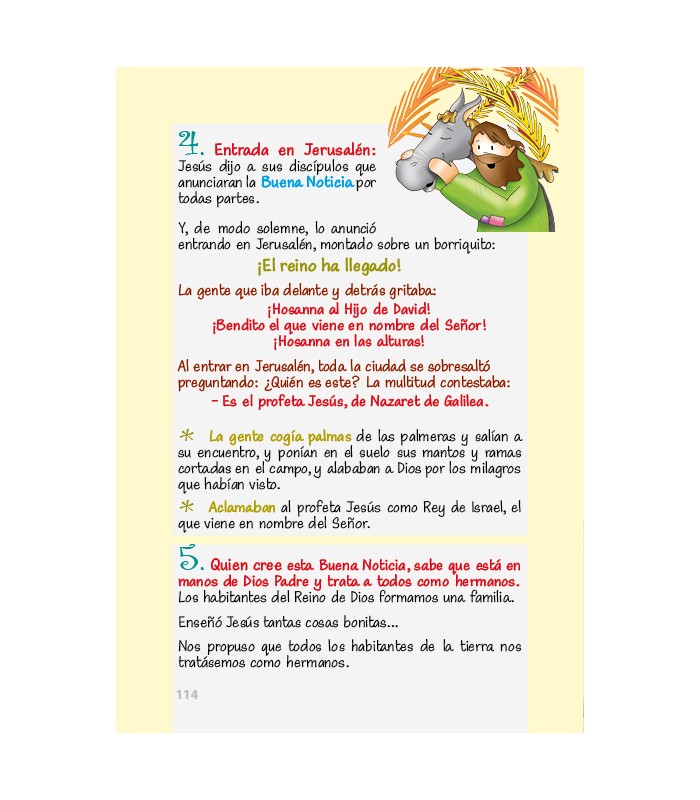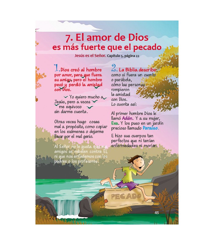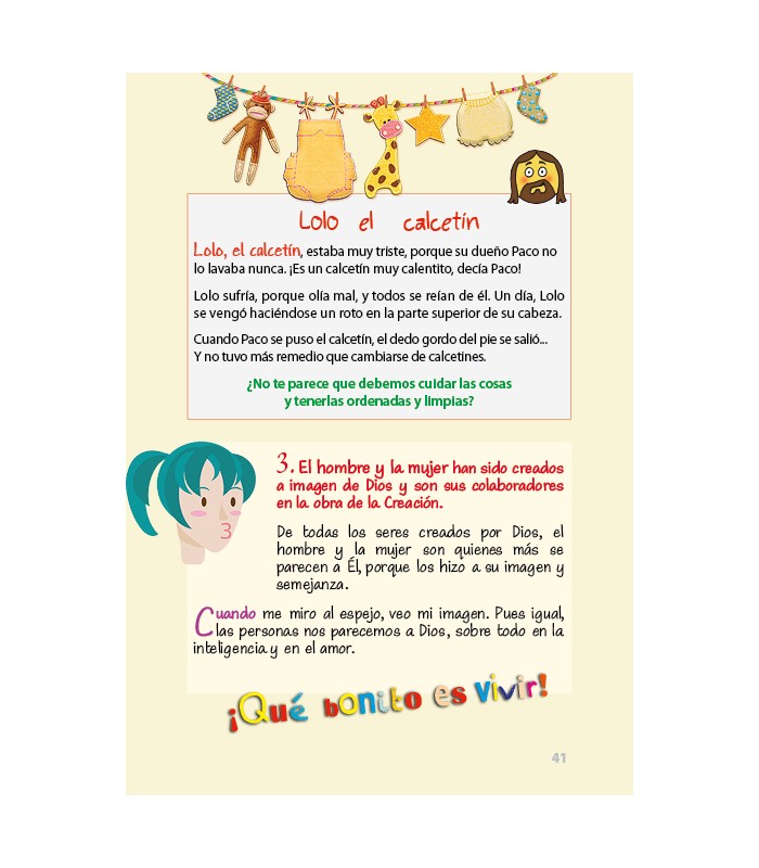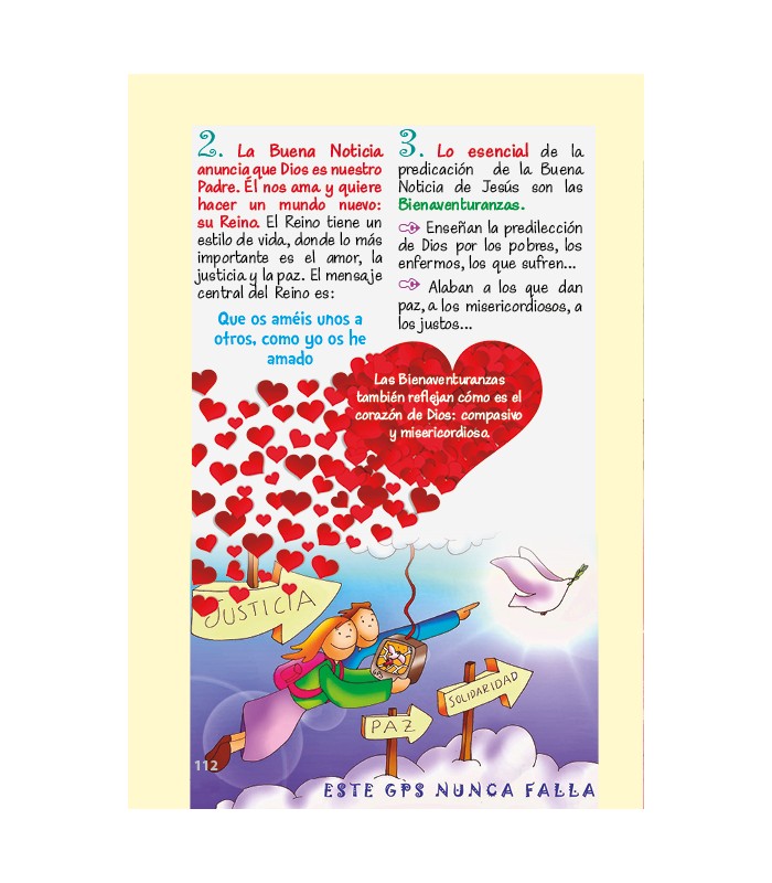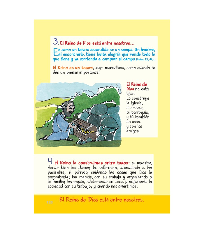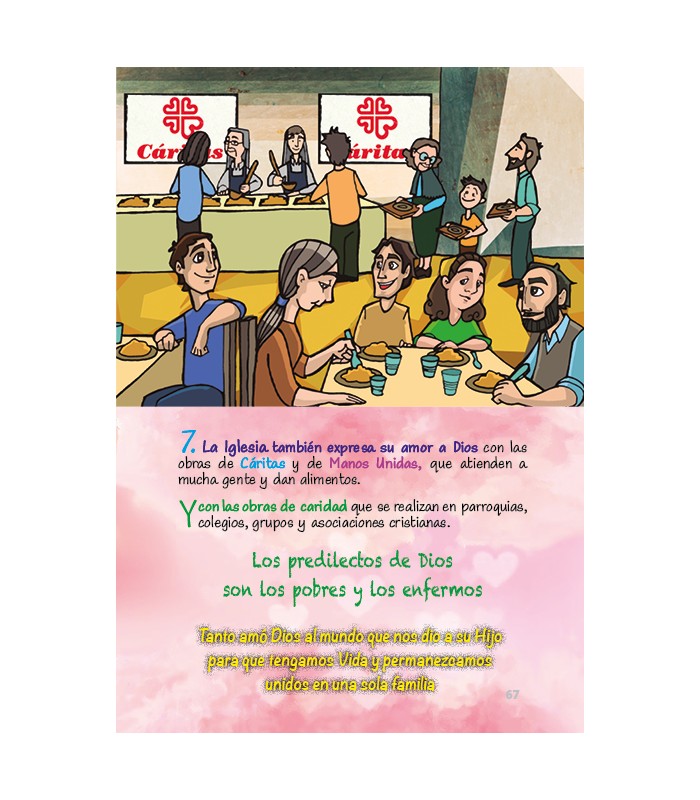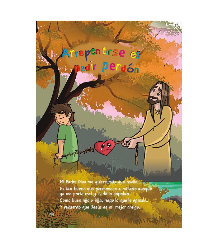 Se transmiten conceptos a través de las ilustraciones. El libro enseña a rezar a los niños, a amar a Jesús, y a ir, poco a poco, queriendo a su parroquia e insertándose en la comunidad cristiana.