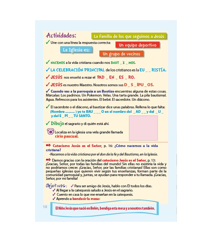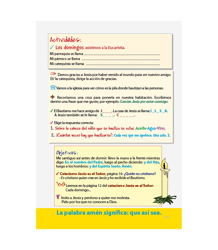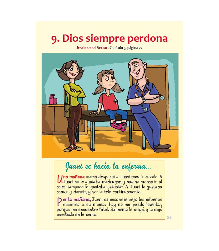 Es un libro de catequesis para los niños que se preparan para su Primera Comunión, un material complementario del catecismo Jesús es el Señor.