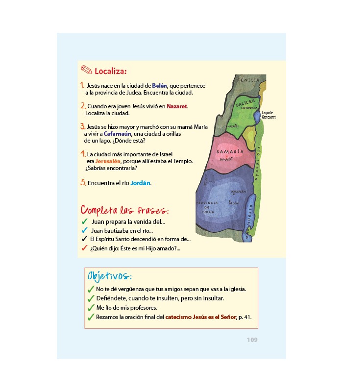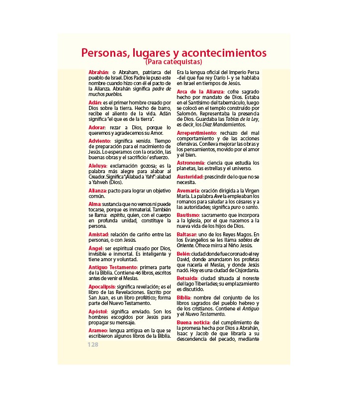 El glosario final, de 218 términos sobre lugares, personas y acontecimientos, enriquece las explicaciones del catequista.