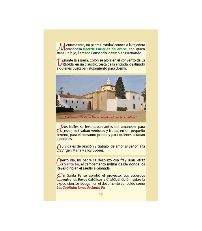 De forma sucinta y ágil, los autores –la comunidad franciscana de Santa María de La Rábida- enmarcan el relato en el contexto histórico y cultural del momento, con originales referencias a los lugares colombinos (Monasterio de La Rábida, Monasterio de Santa Clara, Iglesia de San Jorge, Monasterio de San Jerónimo de la Murtra, La Gomera).Recoge asimismo algunos detalles sobre la religiosidad de los conquistadores.