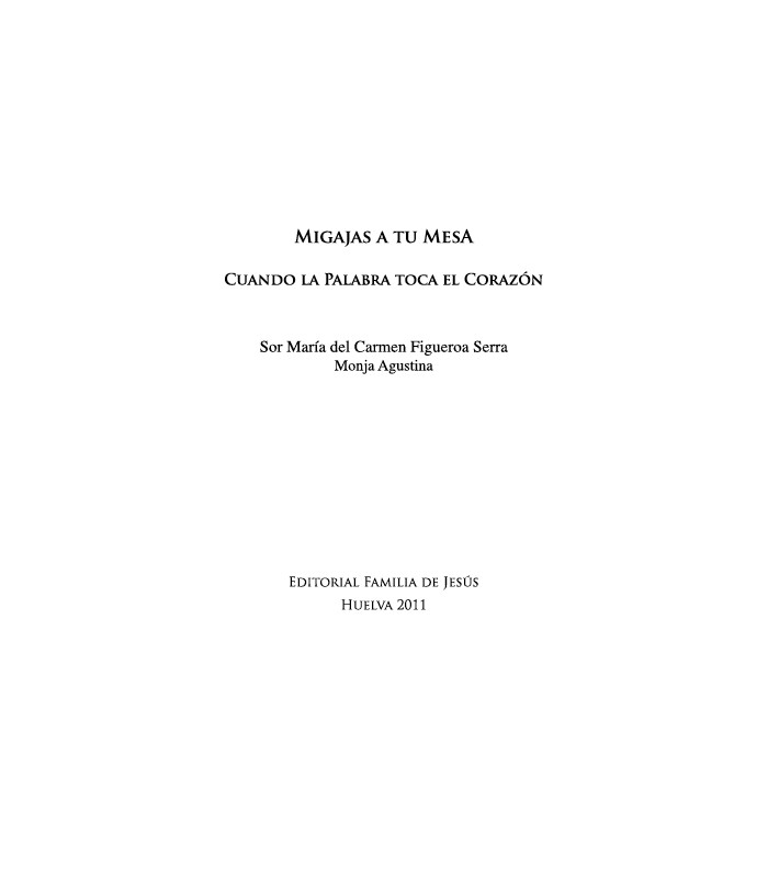 Prólogo de D. Ignacio Noguer: Querido lector, tienes en tus manos un interesante y curioso libro: Migajas a tu mesa. Las migajas parece que saben a poco, pero muchas veces son el medio más adecuado para poder digerir y asimilar algo de gran densidad. Si la palabra migaja nos sugiere la idea de pequeñez o insignificancia, la palabra mesa nos habla de plenitud porque es icono de la Eucaristía, y por tanto, del banquete del Reino preparado por el mismo Jesús para los suyos.